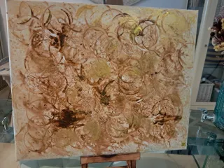 Cuadro decorativo con un diseño abstracto y moderno. Ideal para añadir un toque de color y estilo a cualquier espacio. - Tonos tierra y dorados. - Acabado texturizado.