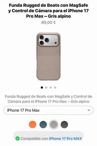 Funda Rugged de Beats para iPhone 17 Pro Max en color Gris alpino. - Compatible con MagSafe. - Incluye control de cámara. Un mes de uso.