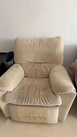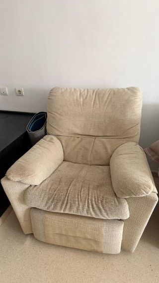 Cómodo sillón abatible. - Tapicería de tela. - Color beige. Cada unidad 90€ Las dos 150