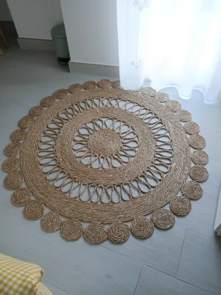 Alfombra redonda de yute beige y marrón