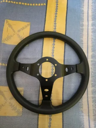 Volante desplazado de color negro de 3 brazos, no tengo los tornillos ni el claxon, lo tenía puesto en un simulador, está como nuevo, precio negociable.