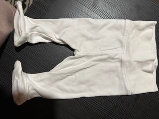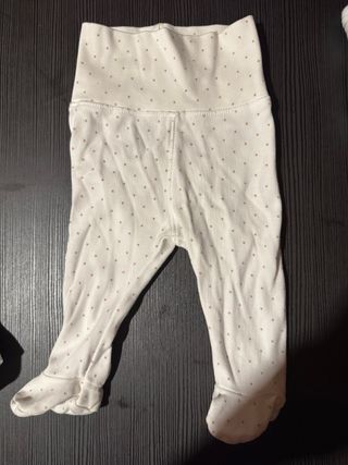 Pantalones pijama de bebé de color blanco y blanco con lunares rosas. Talla 1-2(56 cm) - Tejido suave y cómodo. - Diseño con pies para mantener al bebé abrigado.