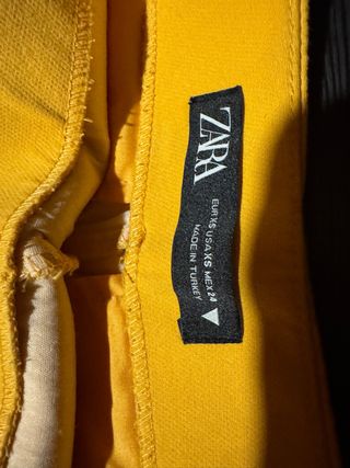 Pack de dos pantalones cortos de la marca Zara. - uno naranja mas oscuro que el de la foto y otro rosa/lila. Talla XS (34/6). Dos pantalones cortos vaqueros uno ancho de pierna beige y otro negro desgastado/gris ajustado.