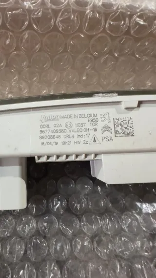 Luz diurna de la marca Valeo, fabricada en Bélgica. - Referencia Valeo: 9677409380 OH-16 - Código: OORL 02A - Homologación E2 11037 - Fecha de fabricación: 18/06/19 - Código PSA: 89208646