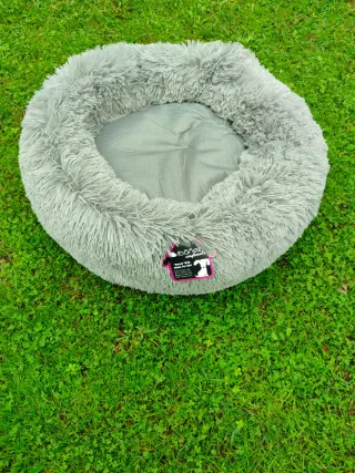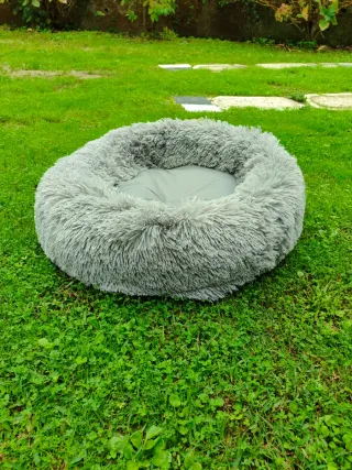 Cama redonda y mullida para mascotas, con un diseño acogedor. -Lavable a máquina - Material exterior de tejido resistente. - Interior de pelo sintético muy suave. -45 largo,18cm alto