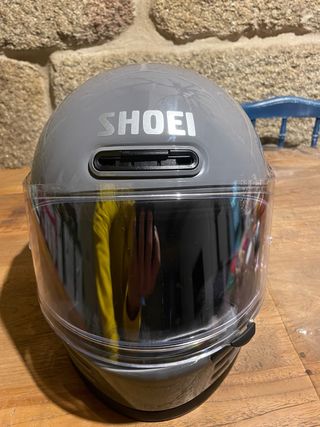 Casco Shoei Glamster en talla L, con un contorno de cabeza de 59-60cm. Su diseño retro y elegante lo hace destacar. - Color gris. - Visera clara. - Cierre de doble anilla. - Tiene dos marcas en la parte superior que apenas se aprecian. - Usados menos de un año.
