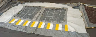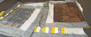 Avance para caravana con unas medidas de 220x385cm, ideal para disfrutar al aire libre. Se encuentra en buen estado, está usado y se puede venir a ver. - Tejido resistente en color gris. - Ventanas con rejilla.