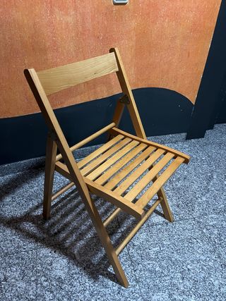 Conjunto de tres sillas plegables de madera. Son prácticas y fáciles de guardar.