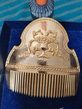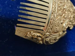 Conjunto de peinetas falleras de la marca Agustín. - Diseño dorado con ornamentación floral. - Incluye una peineta grande y dos pequeñas.
