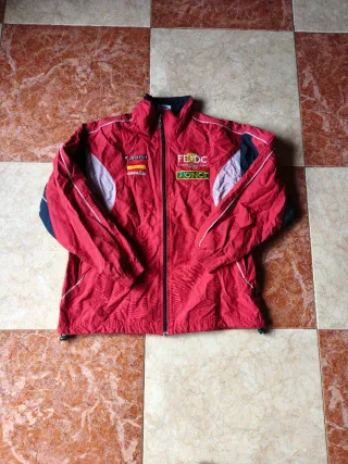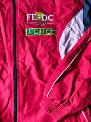 Chaqueta deportiva de la marca Joma en color rojo.Tal cual las fotos que son parte de la descripcion. - Diseño con paneles laterales en color claro y detalles en azul marino. - Cuello alto con cierre de cremallera. - Puños elásticos.