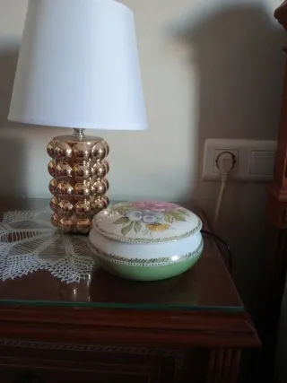 Bonito joyero de cerámica con un diseño floral pintado a mano. Ideal para guardar tus pequeñas joyas o bisutería. - Base de color verde. - Tapa decorada con flores y hojas. - Acabado brillante.