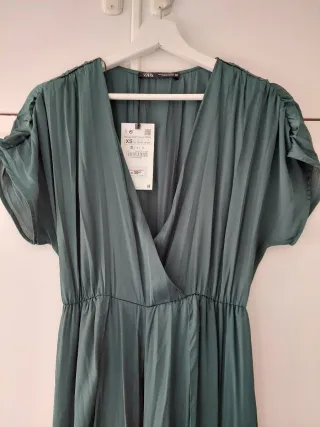 Mono largo de Zara con un diseño elegante y favorecedor. Ideal para ocasiones especiales o para un look de día sofisticado. - Corte fluido. - Abertura lateral en la pierna. - Escote en V. - Mangas cortas.