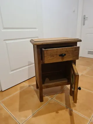 Mesita de noche madera maciza con cristal