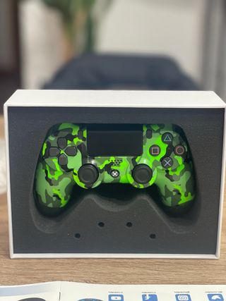 Mando de PlayStation 4 con un diseño de camuflaje verde llamativo. - Diseño de camuflaje verde. - Compatible con PS4.