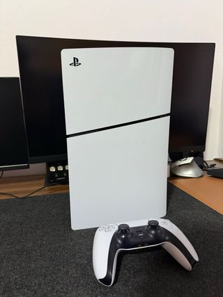 Se vende PS5 Slim con lector de disco. La consola esta casi nueva comprada en 2025 se vende por no usarla. 🔘 1Tb de almacenamiento. 🔘 Incluye mando DualSense. 🔘 Cable Hdmi. 🔘 Cable tipo C. 🔘Cable de alimentación.