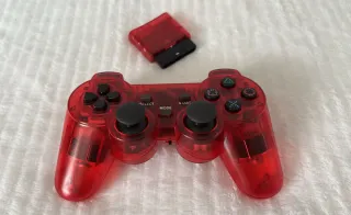 Mando inalámbrico para PlayStation 2 en color rojo. - Diseño transparente. - Incluye adaptador.