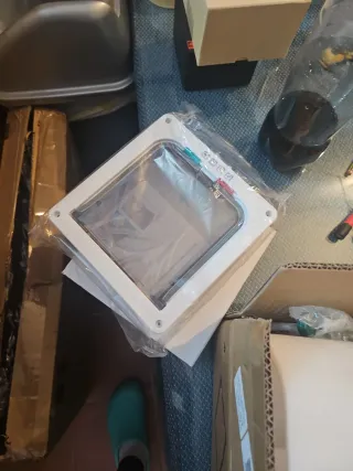 Puerta para gatera con un diseño moderno y funcional. - Marco de color blanco. - Panel transparente.