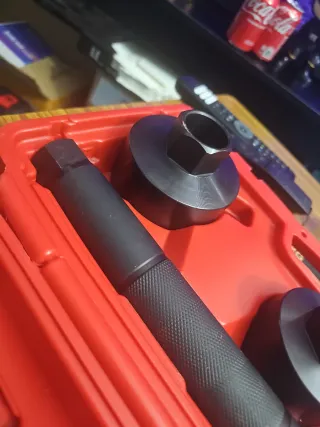 Kit de herramientas para la extracción de rótulas. - Incluye mango de presión y adaptadores. - Fabricado en metal resistente.