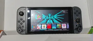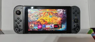 Consola Nintendo Switch en color gris con detalles personalizados. - Joy-Cons personalizados. - Diseño único en los agarres. - Caja, cables, base. - Tarjeta 128gb con juegos y M.g.a. Cualquier duda en privado.