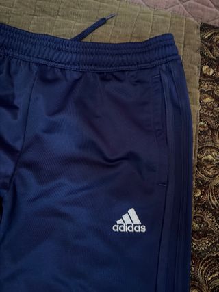 Pantalón deportivo Adidas de color azul marino. - Logo de Adidas en blanco. - Tres rayas características de la marca en las perneras.