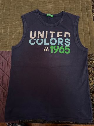 Camiseta sin mangas con el logo de United Colors of Benetton. - Diseño con texto UNITED COLORS y 1965. - Símbolo de Benetton debajo del texto. - Color azul marino.