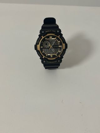 Reloj Casio con un diseño moderno y funcional. - Correa negra. - Bisel y detalles en dorado. - Pantalla digital y analógica. - Resistente al agua WR 100M.