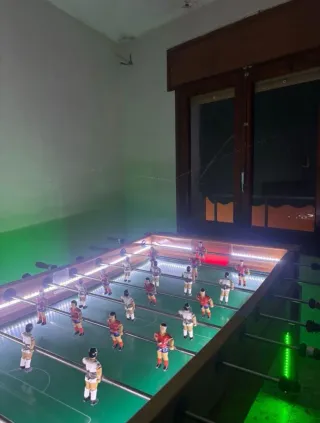 Se vende futbolín en buen estado 750€ precio negociable Medidas: Anchura 100cm Profundidad 180cm Altura 90 cm - Mecanismo de monedas. - Barras metálicas.