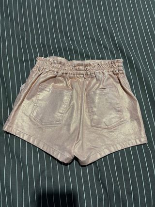 Shorts de niña con un acabado brillante y detalles encantadores. - Cintura elástica con detalle fruncido. - Cierre con tres botones en forma de corazón. - Bolsillos laterales.