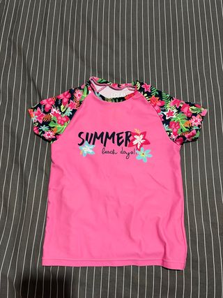 Camiseta de manga corta con estampado floral. - Diseño Summer beach days. - Mangas con estampado de flores tropicales. - Cuello redondo.