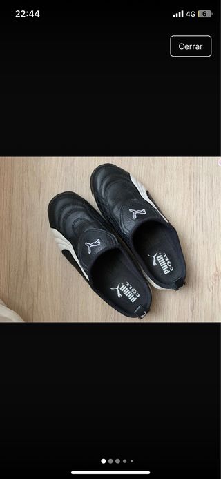 Zuecos Puma Cell vintage, un modelo raro y codiciado. - Diseño en cuero negro con detalles blancos. - Logo de Puma visible en la parte superior. - Logo y nombre 'Puma Cell' en la plantilla. Más productos en mi cuenta vinted: 5mireia