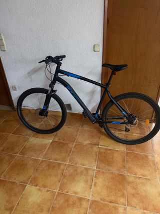 Bicicleta de montaña Rockrider en color negro con detalles en azul. - Cuadro de aluminio. - Ruedas de 29 pulgadas. - Frenos de disco. - Suspensión delantera. Siempre bien cuidada, se vende por no usar. Entrega en mano. Precio negociable con ofertas serias.