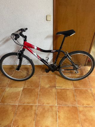 Bicicleta de montaña clásica con cuadro FAT. - Cuadro de color rojo y negro. - Ruedas todoterreno. - Sillín negro ajustable. Tiene uso normal acorde a los años, pero cumple perfectamente. Se vende por falta de uso.