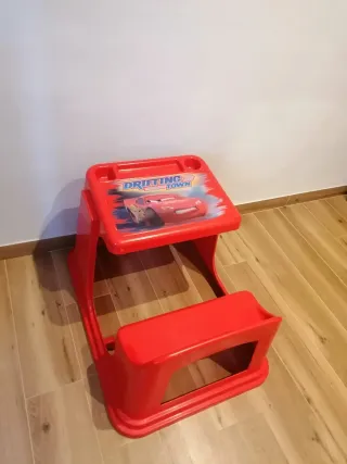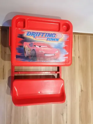 Escritorio infantil con diseño de Cars. Ideal para actividades creativas y de estudio. - Color rojo vibrante. - Ilustración de Rayo McQueen. - Bandeja inferior para materiales.