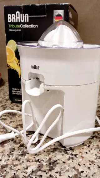Exprimidor de cítricos Braun Tribute Collection. - Diseño blanco. - Incluye tapa protectora. - Cable de alimentación blanco.