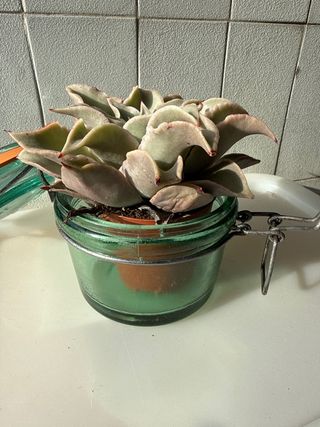 Original bote antiguo y hermético de cristal en tono verde, perfecto en su época para conservar alimentos, ahora es mas un elemento decorativo de gran belleza. Los hierros aunque muy bien conservados muestran marcas de óxido . Se vende el bote, no la planta. - Material: Cristal. - Color: Verde. - Marca L’Ideale -
