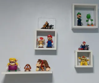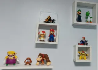 Lote de 10 figuras de Super Mario Bros. La figurita más alta (Luigi) mide unos 14 cm y la más pequeña (Goomba) mide unos 5,5 cm. Incluye: - Luigi. - Yoshi. - Mario. - Toad. - Donkey Kong en coche. - Mario en coche. - Bowser. - Donkey Kong. - Goomba. - Wario. Todos están nuevos, solo usados como decoración. Hago envíos por Wallapop. Hago descuento por lote.