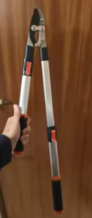 Tijeras de podar robustas y de gran tamaño, diseñadas para trabajos exigentes en el jardín. Cuentan con mangos ergonómicos para un agarre cómodo. - Hojas de corte de alta resistencia. - Mangos extensibles. - Mecanismo de bloqueo de seguridad.
