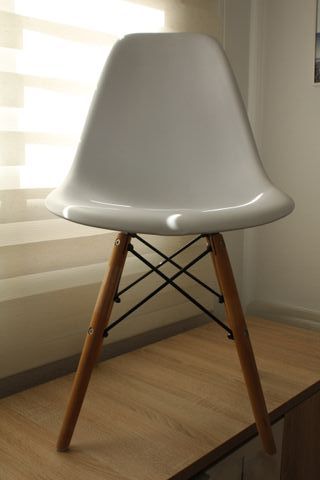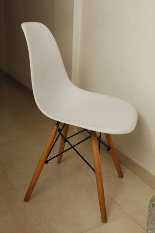 Silla Diseño Resina Blanca Patas Madera