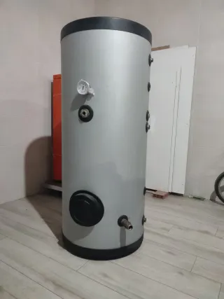 Interacumulador o depósito de inercia para sistemas de calefacción. Diseñado para almacenar energía térmica. - Deposito de inercia de 300L - Incluye termómetro. - Varios puntos de conexión. - Serpenti de alta eficiencia.