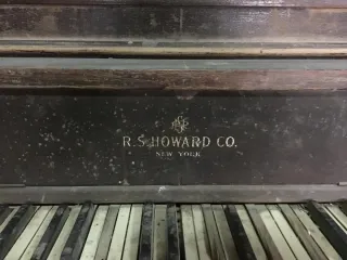 Piano vertical de la marca R. S. Howard Co. de Nueva York. Un instrumento con historia. Necesita bastante reparación, puede servir de decoración. Medidas: alto 140, ancho 150, fondo 85. - Teclado con 54 teclas. - Mueble de madera oscura.
