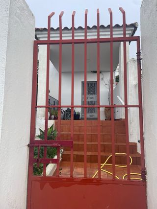 Conjunto de puertas de hierro forjado, ideales para exteriores. - Diseño robusto y elegante. - Acabado en color rojo. Las medidas son: Puerta pequeña: Ancho: 96cm Alto: 2,20 m Puerta grande: Está dividida en tres hojas: -1,20 m 83 cm 1,17 m ANCHO PUERTA GRANDE:3,20m Alto: 2,62m Precio puerta peq: 200€ Precio puerta grande: 400€ Si te llevas el conjunto oferta 500€ Preguntar por privado. Puede venir a verla sin compromiso.