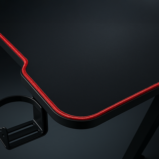 Alfombrilla de escritorio de gran tamaño, negro con borde rojo. 140x60/57cm. - Superficie lisa para un deslizamiento óptimo. - Borde cosido en color rojo. - Base antideslizante.