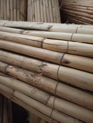 caña partida 1x5 hay otras medidas como 2x3 a 15€ o 1.5x3 12€ - Material natural. - Color beige/marrón claro. - Atadas con hilo.