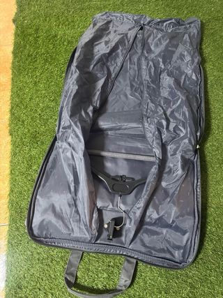 Portatrajes de tela resistente, ideal para llevar tu ropa de forma organizada y protegida. - Asa de mano. - Correa de hombro ajustable y extraíble. - Compartimento principal amplio.