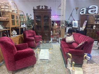 ✅ Ref. C10038 Conjunto de comedor compuesto por un sofá de 3 plazas y 2 sillones a juego. Tanto el sofá como los sillones disponen de unos asientos cómodos y acolchados, así como reposabrazos en los laterales para un mayor confort. Su tapizado es muy elegante en un color burdeos y tienen detalles que los hacen resaltar. Son ideales para colocar en un salón comedor. Como podemos observar en las fotografías se encuentra en buenas condiciones. 📐 Medidas Sofá (ancho x fondo x alto): 180x70x83cm. Sillones: 83x75x93cm. Financia tus compras de forma inmediata. Visita nuestra web Cardiffstore o nuestra tienda en Catral (C/Alfafar)