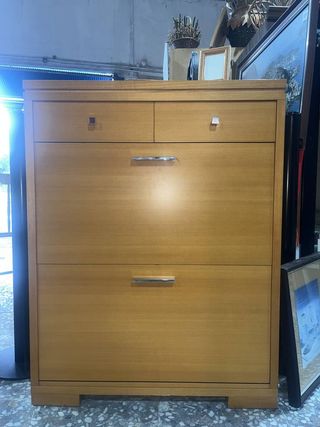 ✅ Ref. C10040 Zapatero de tamaño medio que ha sido fabricado con madera de buena calidad y robusta. Se trata de un zapatero compuesto por dos cajones superiores y dos puertas abatibles inferiores en el que podemos almacenar gran cantidad de zapatos en su interior. Es un zapatero que queda ideal en un recibidor. Como podemos observar en las fotografías se encuentra en buenas condiciones. 📐 Medidas (ancho x fondo x alto): 82x25x106cm. Financia tus compras de forma inmediata. Visita nuestra web Cardiffstore o nuestra tienda en Catral (C/Alfafar); Llámanos o envíanos un WhatsApp al número de nuestro perfil. Envíos a toda España.