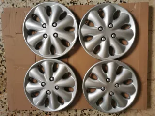 Juego de 4 tapacubos plateados para Citroën,Peugeot. Diseñados con un estilo moderno y elegante. - Acabado plateado. - Diseño de 10 radios. - Diámetro aproximado de 15 pulgadas. -Originales -estado ver fotos -envio rápido