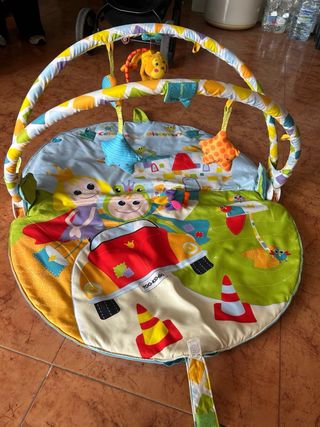 Alfombra de juegos con arco y juguetes colgantes para bebés. Diseñada con colores vivos y personajes divertidos. - Incluye varios juguetes colgantes. - Arco de juegos desmontable. - Base acolchada y suave.