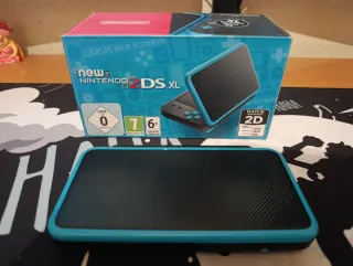 Consola Nintendo 2DS XL en color negro y azul, con el juego Pokémon Ultraluna. - En su caja original - Incluye cargador. - Estuche de Mario con diseño de Bowser. - La consola solo ha sido usada para jugar al ultraluna y ni si quiera el juego completo (muy poco uso).