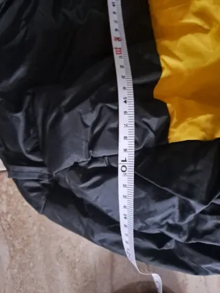 Saco de dormir con un diseño bicolor en negro y amarillo. - Color principal: negro. - Detalle central: amarillo. -Largo 2,25 ancho 70cm -cosida una de las unas de las cremalleras para que no se abra